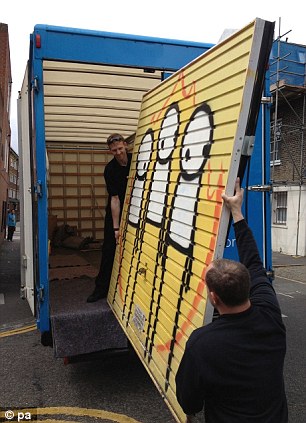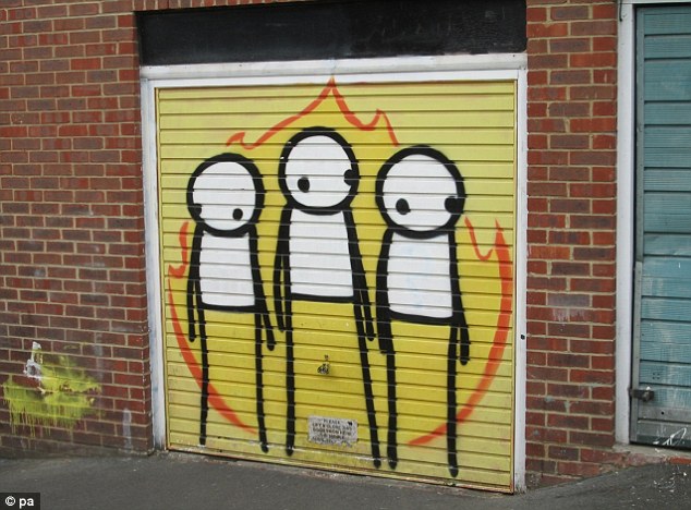 « London Riots » peint par Stik en 2011 sur une porte de garage située à l’arrière du Pogo Café va prochainement être mis aux enchères.