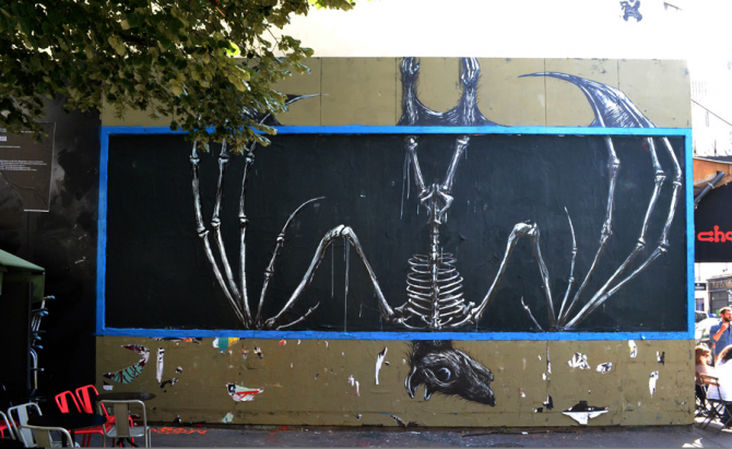 L’association le M.U.R. Oberkampf propose depuis plusieurs années à des artistes d’art d’urbain d’investir un mur de 3x8m situé à l’angle des rues Saint-Maur et Oberkampf (Paris, 11e).