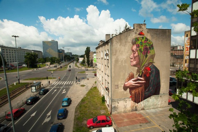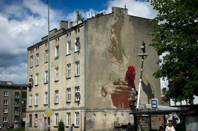 Sous l’impulsion de la Fundacja Urban Forms, le team ETAM Cru (BEZT et SAINER) vient de terminer un nouveau dans le musée à ciel ouvert Urban Forms Galerie. Cette « Madame Chicken » vient compléter un tableau prestigieux de fresques géantes réalisées dans le centre ville de Lodz, en Pologne.