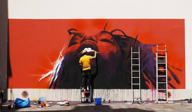 Les street artiste strasbourgeois DAN23 vient d’inaugurer ce 26 juillet 2013 le tout nouveau M.U.R. de Mulhouse.