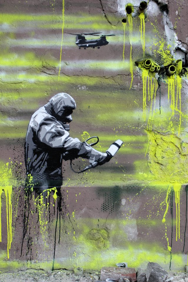 Patrick, alias Plotterroboter KEN ou Plotrob, littéralement le « KEN le robot traçeur » est l’un des artistes les plus visibles à Berlin. On retrouve ses pochoirs dans les places incontournables de l’art alternatif berlinois, comme ici au RAW tempel dans Friedrichshain où il a réalisé cette pièce en mai 2012. La vision du monde de KEN est, comme vous pouvez le constater, pessimiste. Guerres nucléaires et chimiques, manipulations génétiques,… l’art de Plotrob est un cri, une alerte contre notre auto-destruction programmée. Sa peinture est forte, et ne laisse jamais le spectateur indifférent, dans un sens comme dans l’autre.