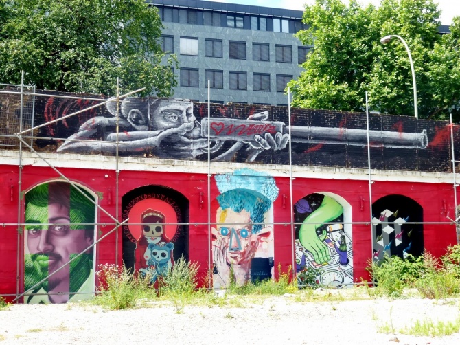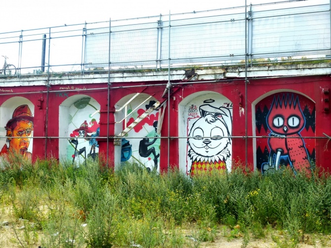 … Mais aussi dans les alcôves du mur de soutènement de Warschauer Strasse qui borde le grand espace extérieur avec des oeuvres de JBAK, Dscreet, Alaniz…