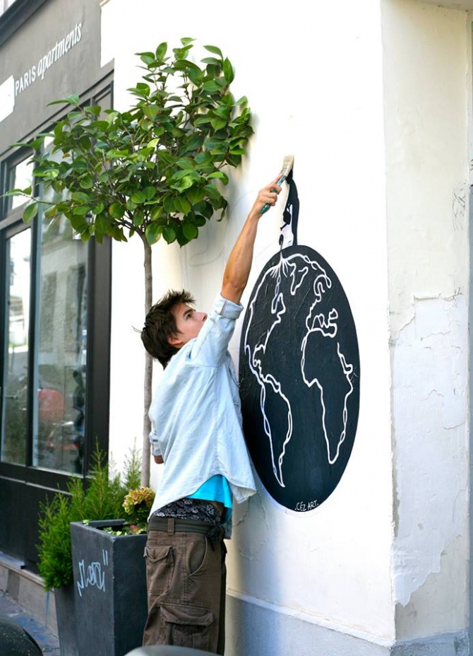 L’artiste peintre Céz Art, qui réalise principalement des compositions sur toiles en mélangeant peintures, collages, pochoirs ou dessins, utilise également la rue comme terrain de jeu. La preuve avec ce collage poétique réalisé récemment dans l’un des endroits les plus célèbres de Montmartre, juste en face de l’épicerie Collignon. La « Maison Collignon » est connue mondialement pour avoir été l’une des scènes principales du film « Amélie Poulain ». Ce collage est visible à l’intersection des rues Androuet et Trois-Frères, Paris 11ème (Métro Abbesses).