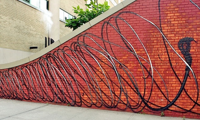 Ce mur est impressionnant par ses dimensions, vraisemblablement impossible à pas prendre en une seule pause. Comme à son habitude, DALeast fait surgir sur ce mur des animaux tout droit sortis de son bestiaire surréaliste et sculptural. Ce mur s’inscrit dans un programme soutenu par le NYCDOT Arterventions program, auquel ont participé en plus de DALeast, les artistes CAM, Eltono, Shepard Fairey, Faith47, MOMO, Stefan Sagmeister, and Yuko Shizimu.