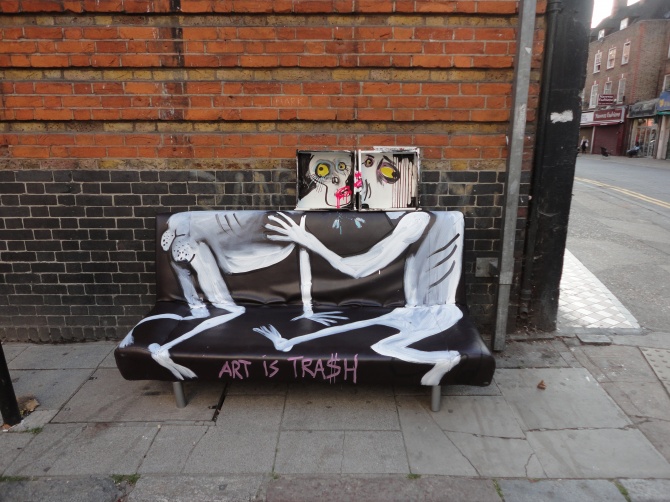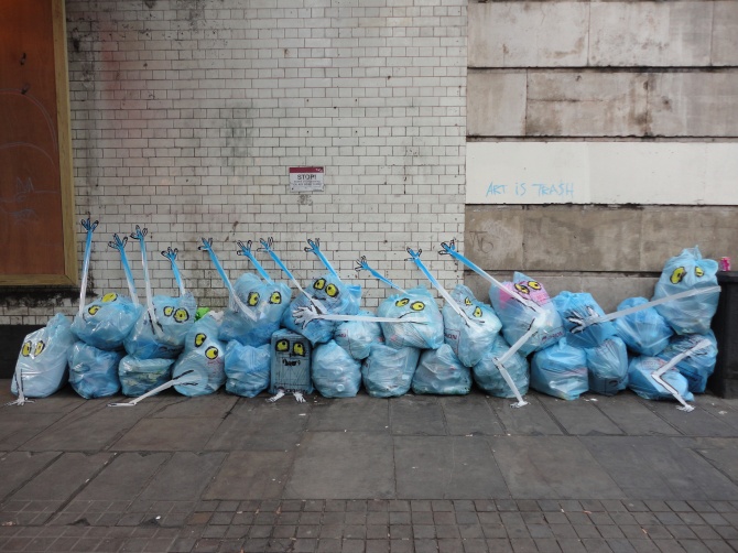Francisco de Pajaro est un street artiste Espagnol, né à Zafra. La spécialité de Francisco de Pajoro est de transformer les ordures en oeuvres. « El Arte es basura » (l’art est déchet) tag t’il souvent sur les murs de la capitale Catalane… Ici à suivre se sont des oeuvres qu’il a réalisé à Londres (envoyée par l’artiste), qui comme à son habitude mettent en scène nos résidus, pour en faire de drôles de personnages. Art is Trash !