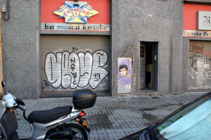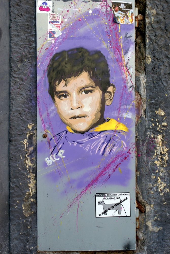 Poblenou, quartier historique de la Barcelone industrielle et manufacturière qui regorge de vieilles usines et entrepôts désaffectés, est le théâtre idéal pour les artiste de Street Art. RICE y a laissé, il y a peu, le portrait d’un jeune garçon, fraîchement peint en août 2013.