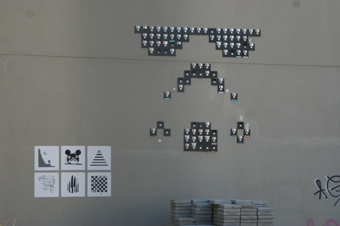 La rencontre avec ce collage fait à partir de disquettes 3,5 pouces, se veut résolument évocatrice d’une modernité aujourd’hui passée. Début août 2013, il était encore possible de voir cette oeuvre dans un terrain vague du quartier de Poblenou à Barcelone.