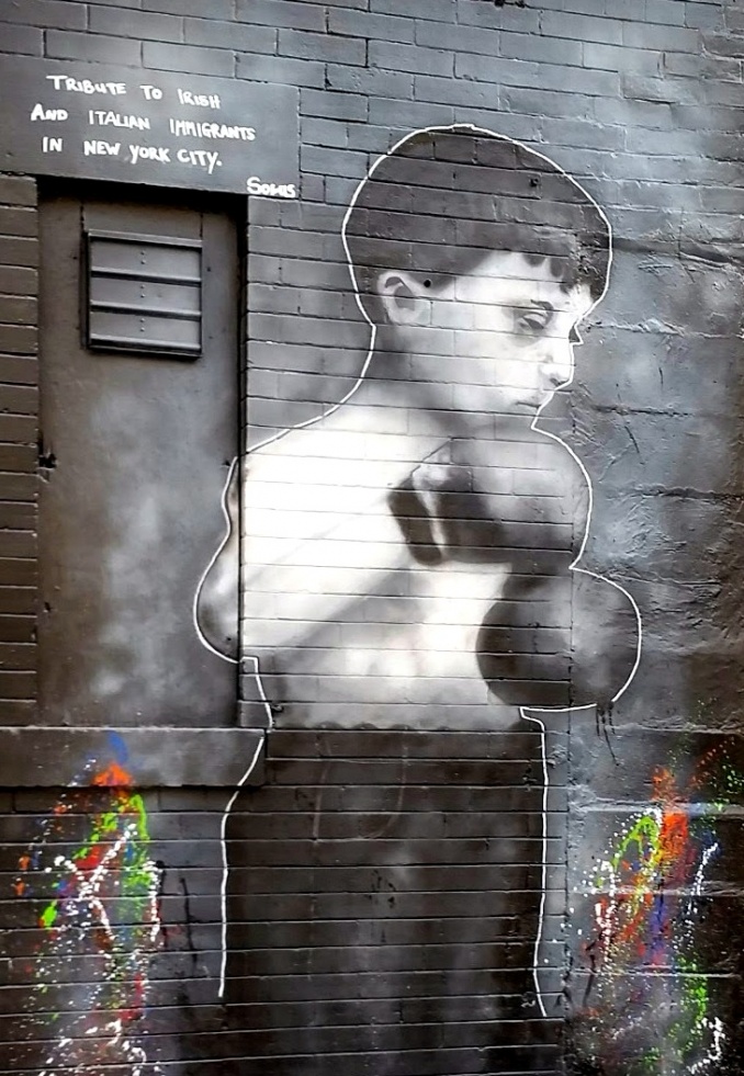 « Punch above your weight » est un hommage rendu par l’artiste irlandais Solus aux émigrants italiens et irlandais de New York.