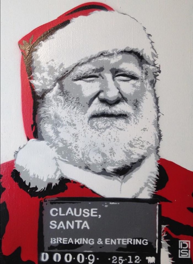 Je ne peux m’empêcher de remettre dans cette sélection quelques oeuvres anciennes, comme le Christ crucifié de Banksy, le Père Noël désabusé de STRA et quelques autres.