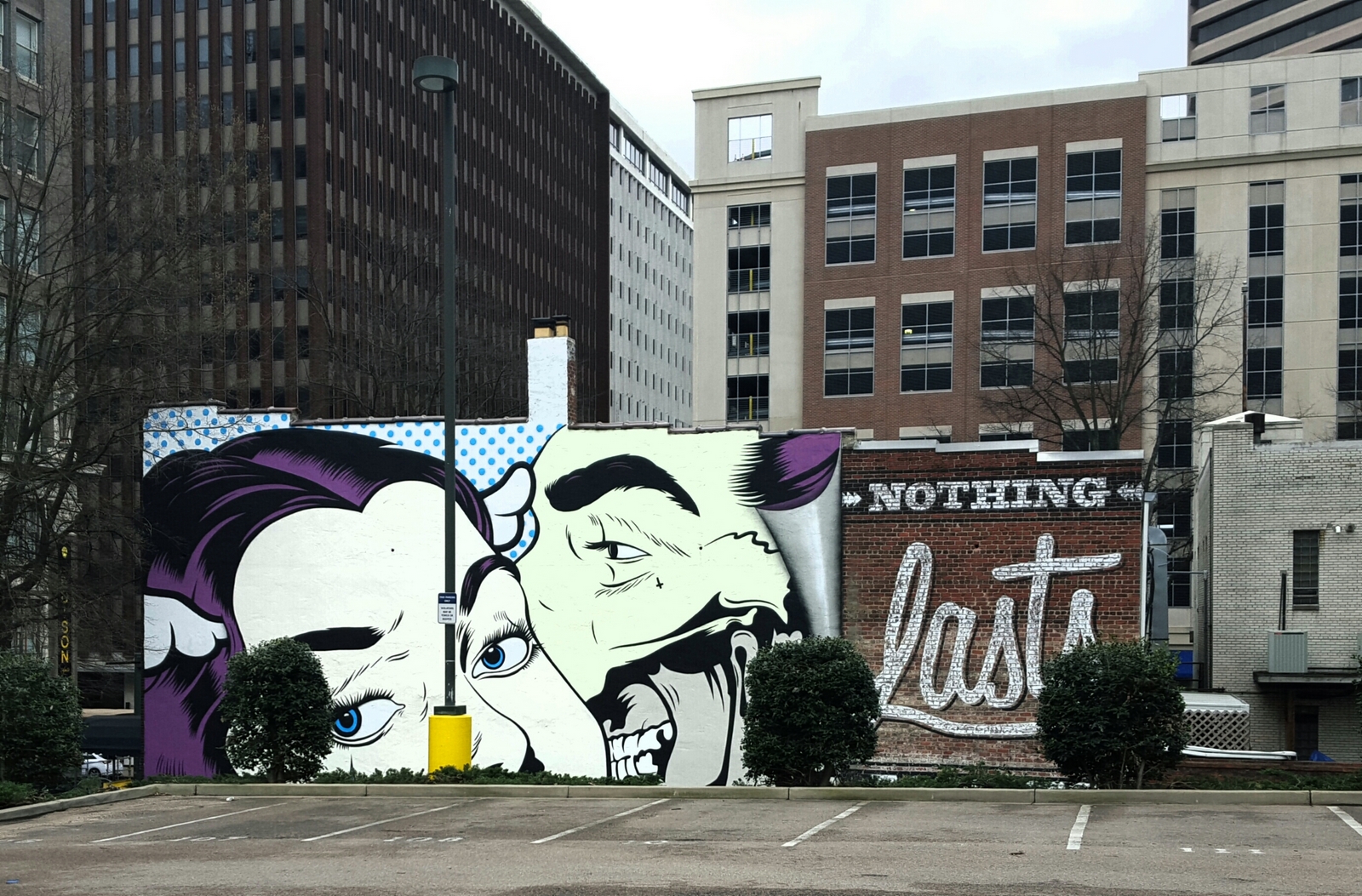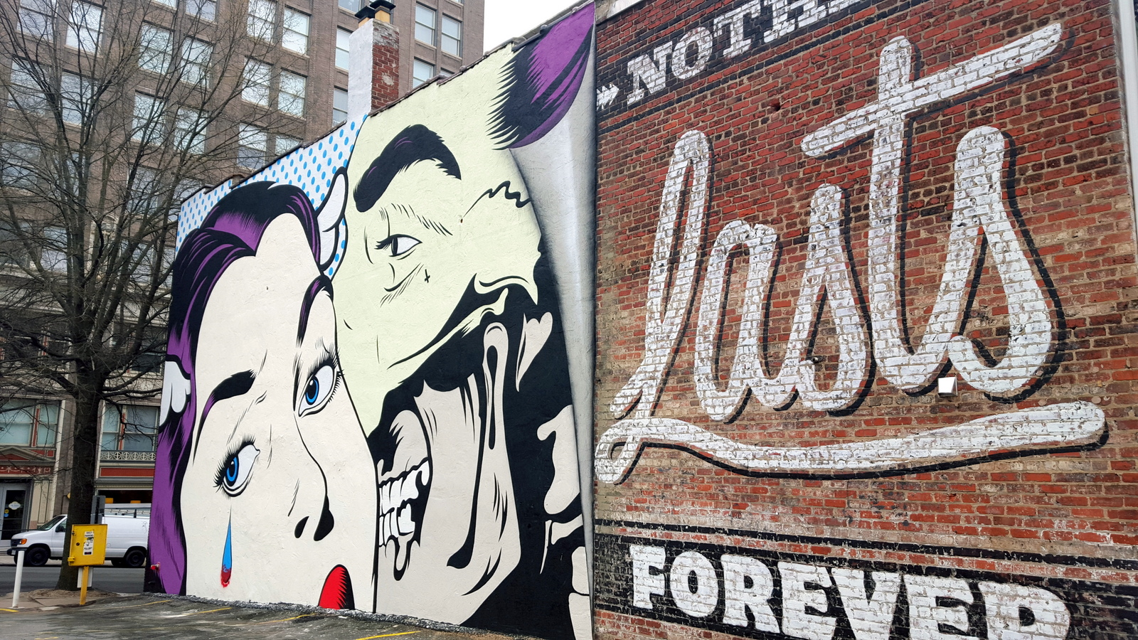 « Nothing Lasts Forever » (Rien ne dure éternellement) reprend une représentation récurrente de l’oeuvre de D*FACE, ce couple au style pop art et plus précisément Popcalyptic, comme le défini Dean Stockton (aka D*Face), Un coupe au visage, pour l’homme, partiellement cadavériques, qui affichent une douceur effrayée ; mélange d’amour, de peur, de tristesse et de tranquillité, fatalité peut-être.