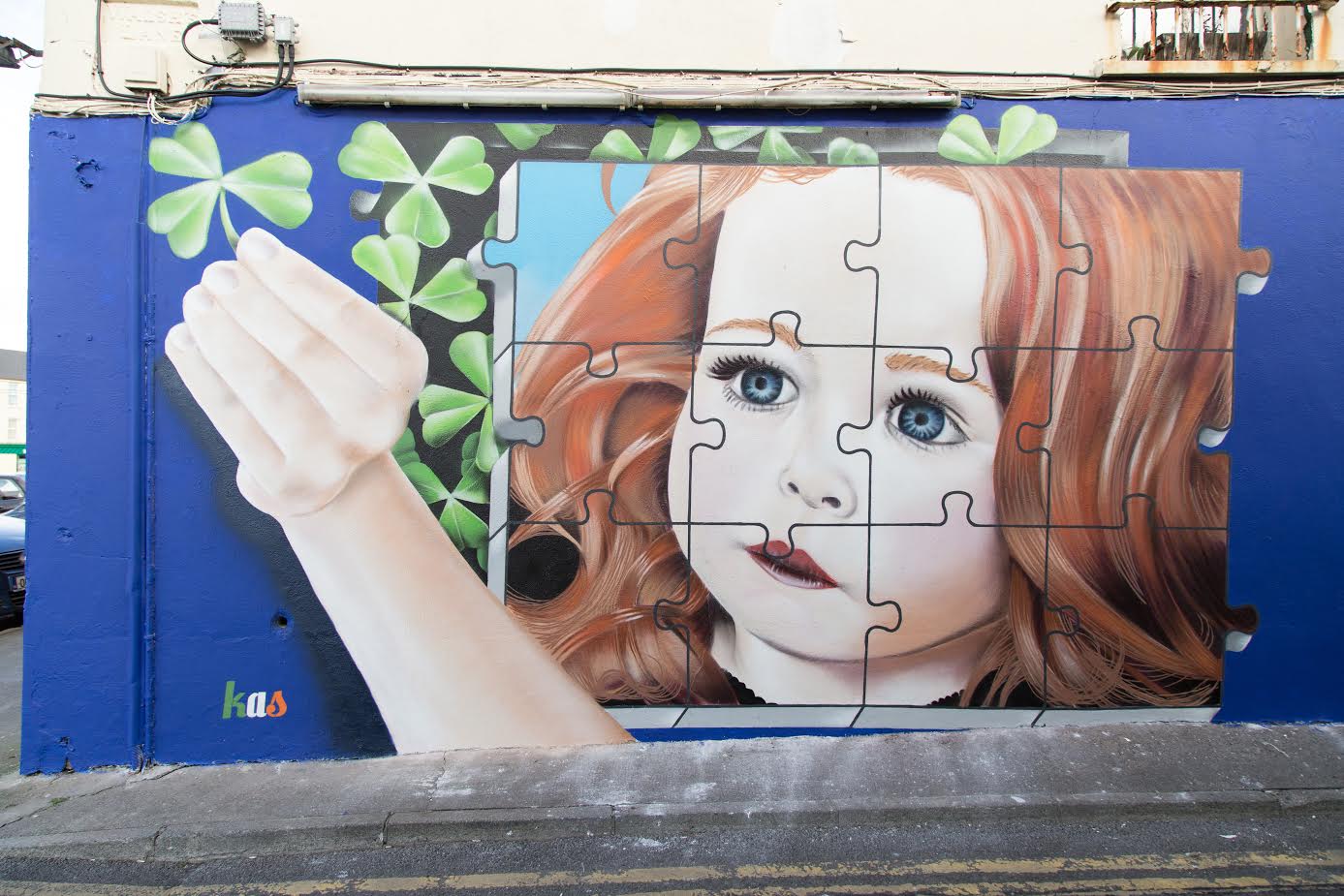 Lucky Charm est une pièce toute en douceur réalisée par l’artiste Kas, fin août 2016, lors du festival « Waterford Walls« . L’oeuvre reprend l’un des codes préférés de l’artiste, le puzzle.
