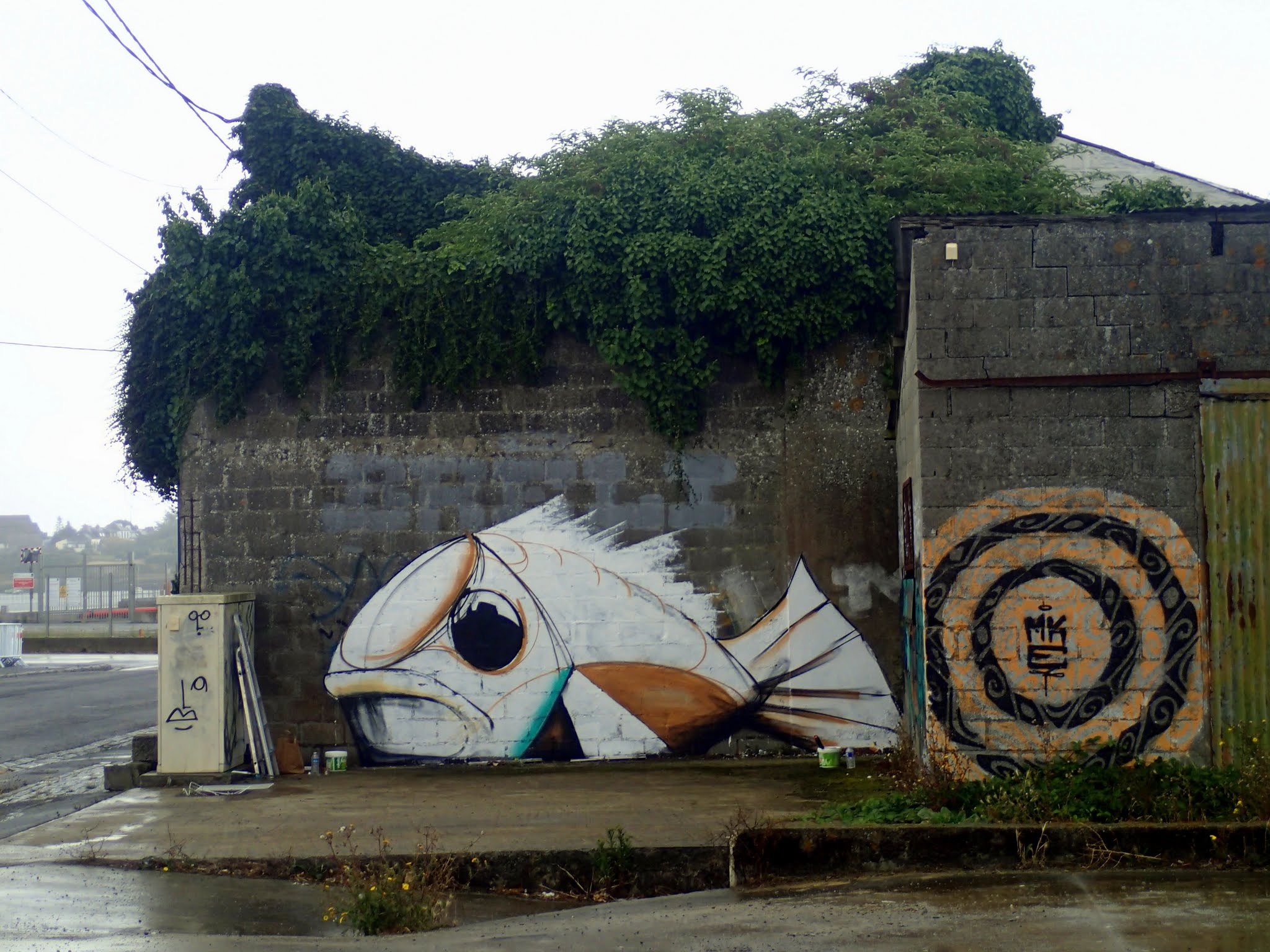 Venu passer quelques jours à Lorient pour le Festival Interceltique, Michaël Husser aka Mika est aller faire un petit tour vers le port de commerce, le spot local des artistes urbains bretons. Ce poisson baptisé « Dry Fish » par l’artiste alsacien fait référence aux trombes d’eau que Mika a pris sur la tête pendant qu’il posait son poiscaille.