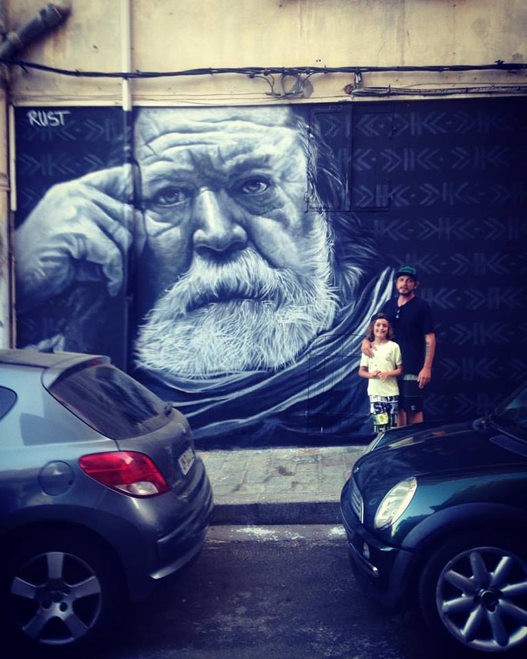 Rust, l’un des deux street artiste ayant réalisé ce double portrait photo-réaliste en août 2016, dit « tirer ses influences artistiques principalement du tatouage dans lequel il a toujours navigué ».