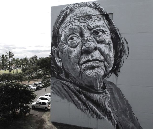 Gigantesque portrait d’un vieux pêcheur sur un mur de plus de 70 mètres de haut peint par l’artiste allemand Hendrik Beikirch